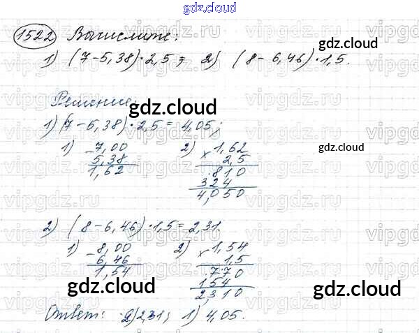 Ответ на задание 1522 Учебник Математика за 5 (пятый) класс Виленкин, Жохов, Чесноков, Шварцбурд 2013