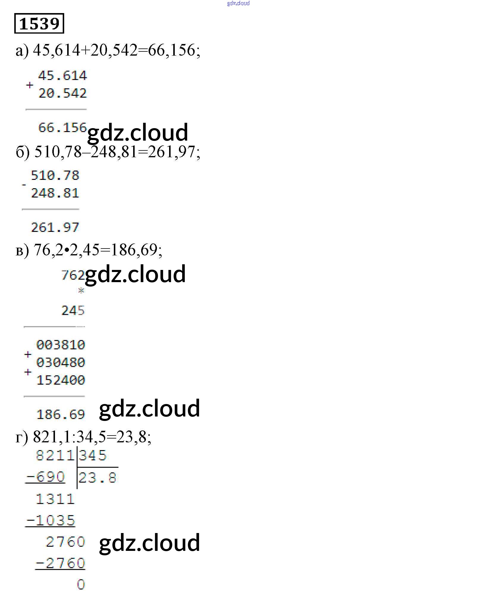 Ответ на задание 1539 Учебник Математика за 5 (пятый) класс Виленкин, Жохов, Чесноков, Шварцбурд 2013