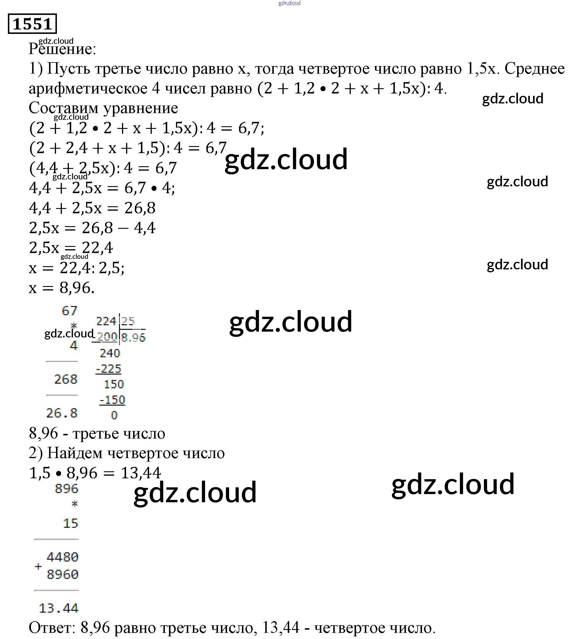 Ответ на задание 1551 Учебник Математика за 5 (пятый) класс Виленкин, Жохов, Чесноков, Шварцбурд 2013