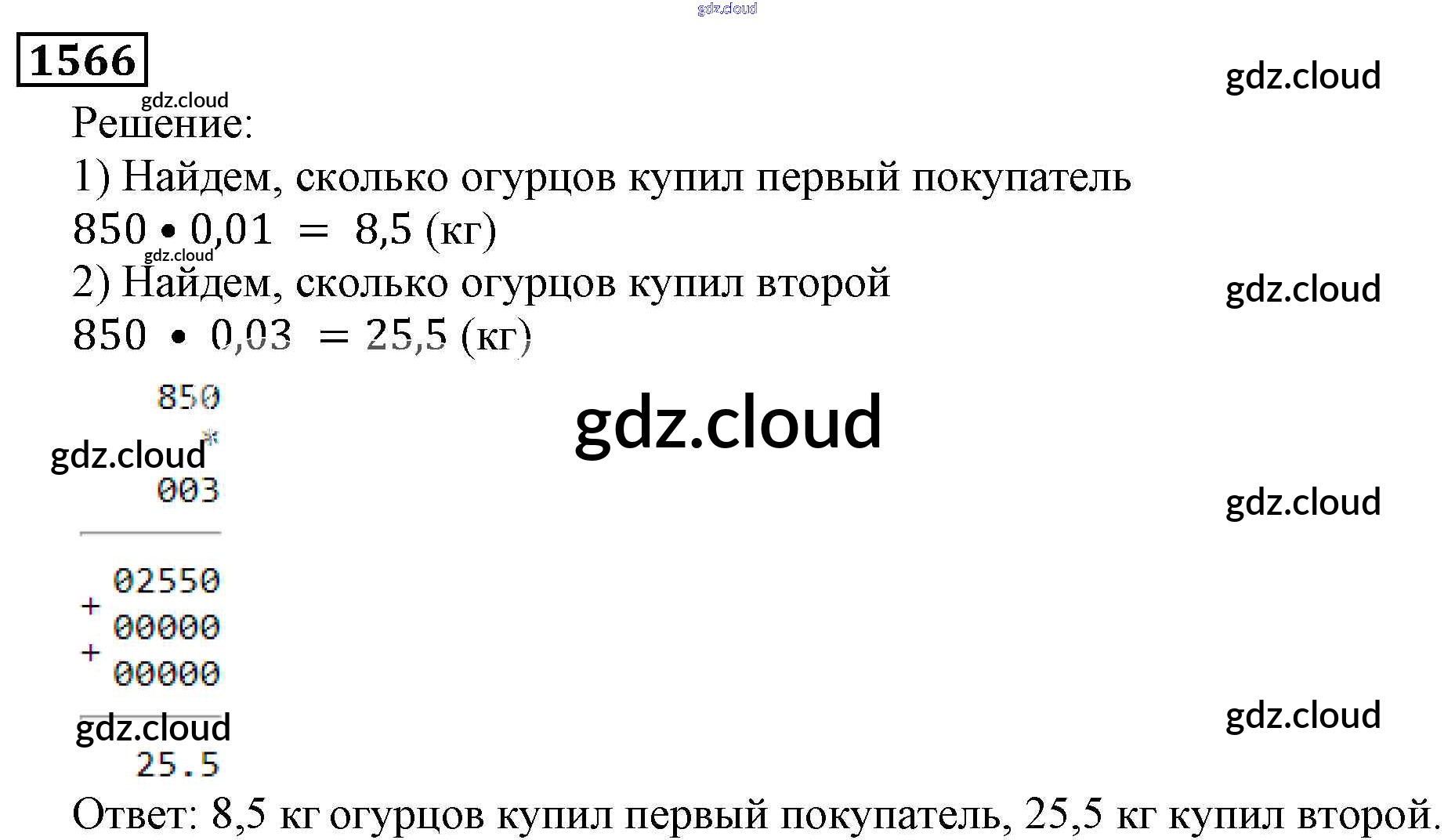 Ответ на задание 1566 Учебник Математика за 5 (пятый) класс Виленкин, Жохов, Чесноков, Шварцбурд 2013
