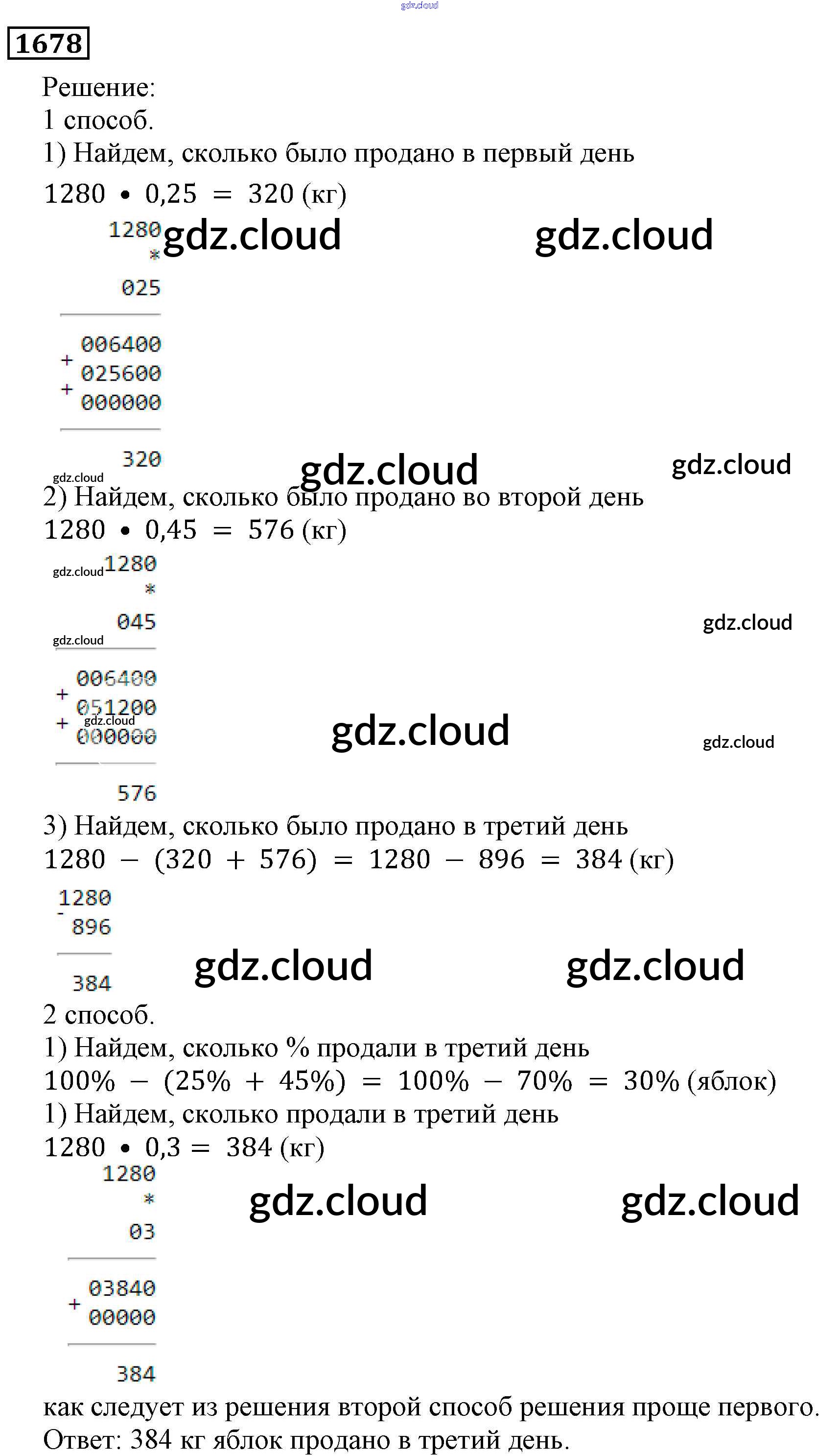 Ответ на задание 1678 Учебник Математика за 5 (пятый) класс Виленкин, Жохов, Чесноков, Шварцбурд 2013