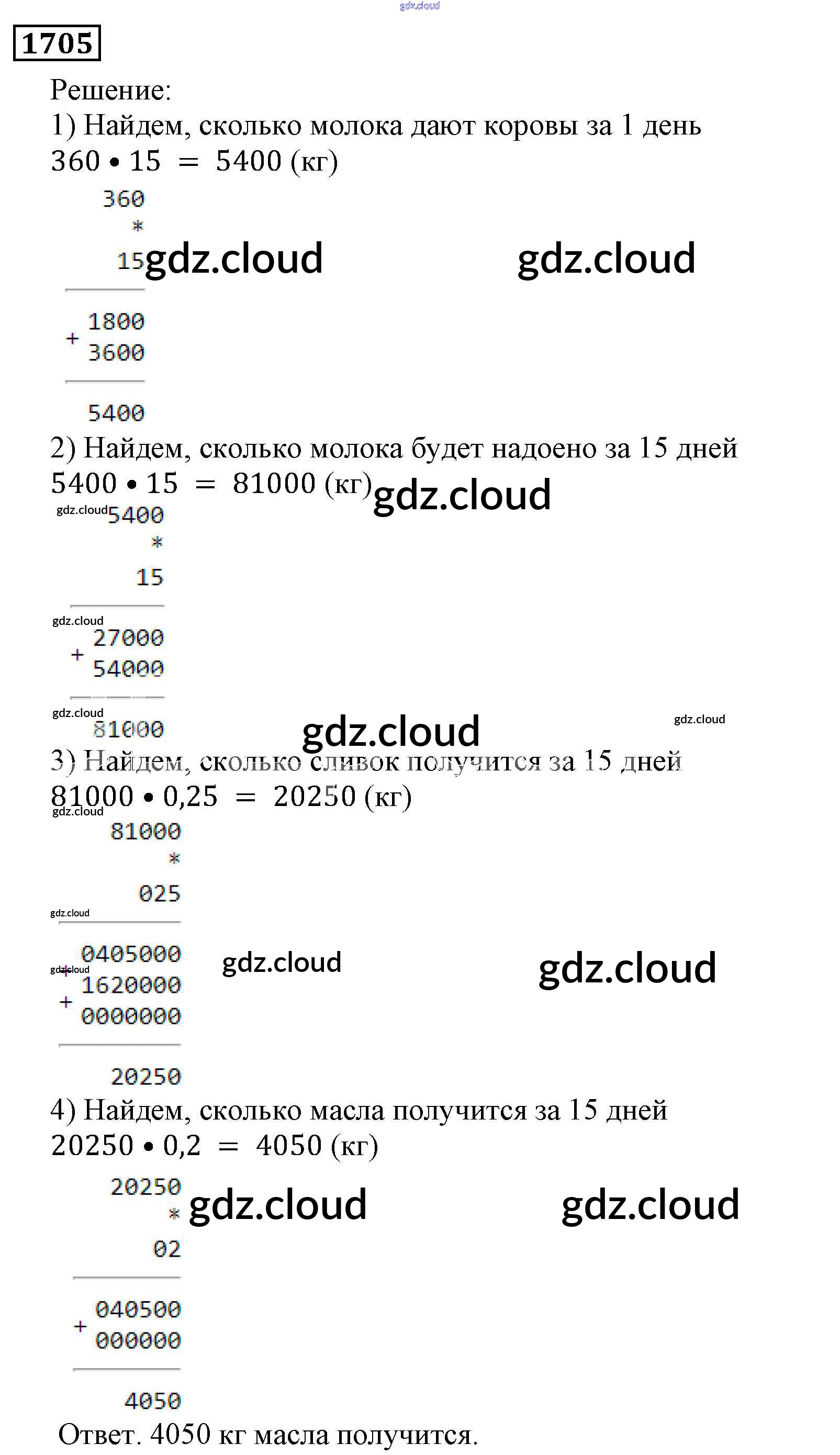 Ответ на задание 1705 Учебник Математика за 5 (пятый) класс Виленкин, Жохов, Чесноков, Шварцбурд 2013