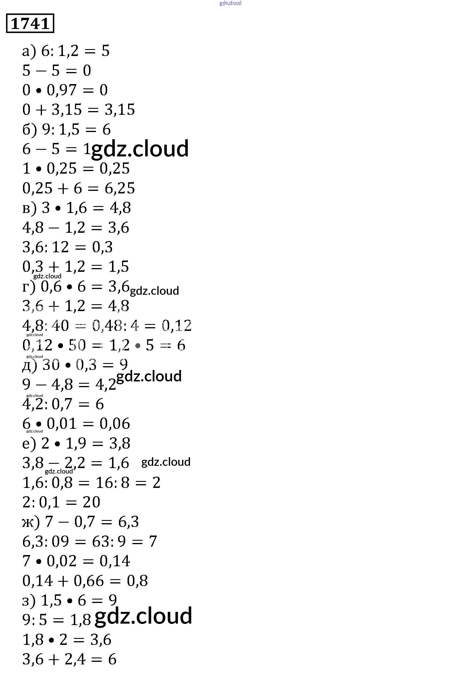 Ответ на задание 1741 Учебник Математика за 5 (пятый) класс Виленкин, Жохов, Чесноков, Шварцбурд 2013