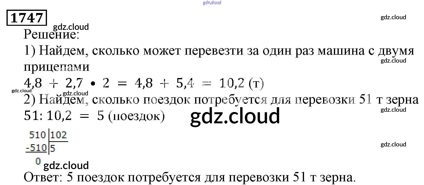 Ответ на задание 1747 Учебник Математика за 5 (пятый) класс Виленкин, Жохов, Чесноков, Шварцбурд 2013