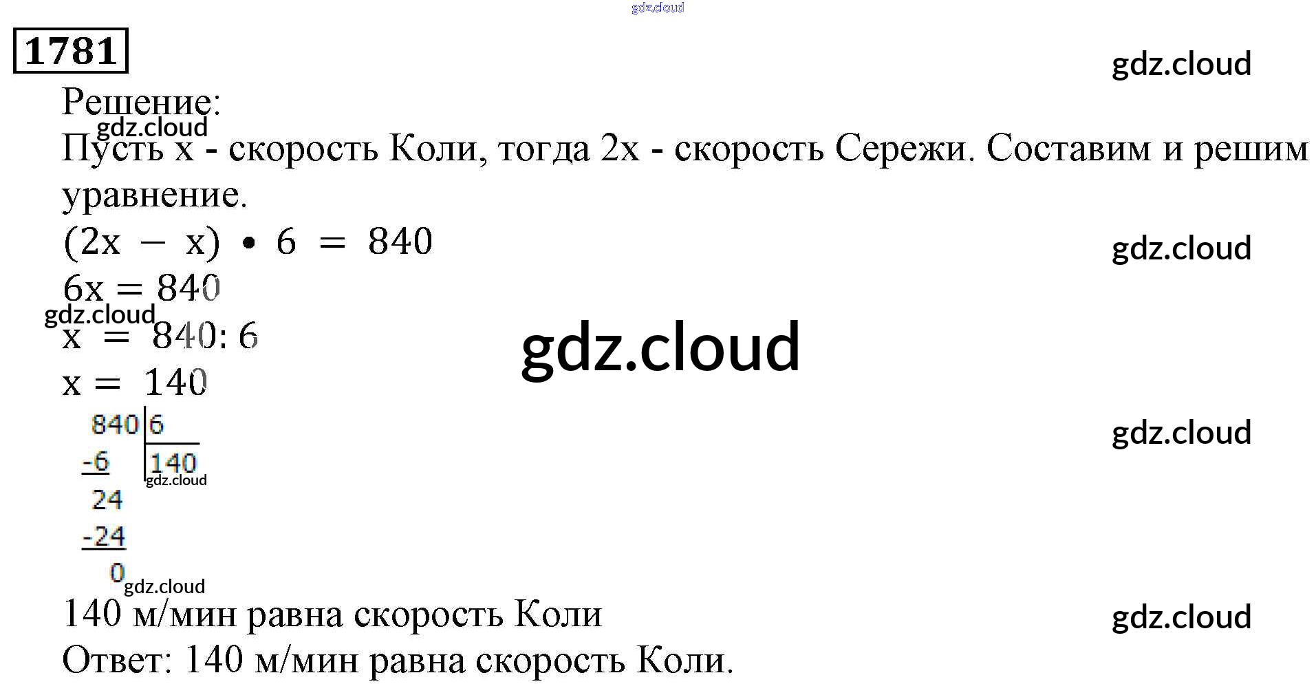 Ответ на задание 1781 Учебник Математика за 5 (пятый) класс Виленкин, Жохов, Чесноков, Шварцбурд 2013