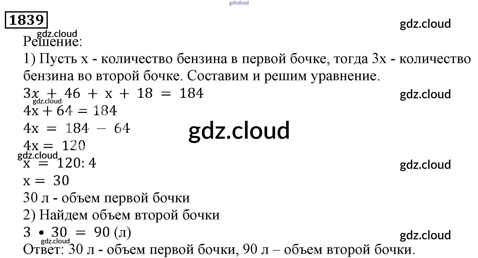 Ответ на задание 1839 Учебник Математика за 5 (пятый) класс Виленкин, Жохов, Чесноков, Шварцбурд 2013