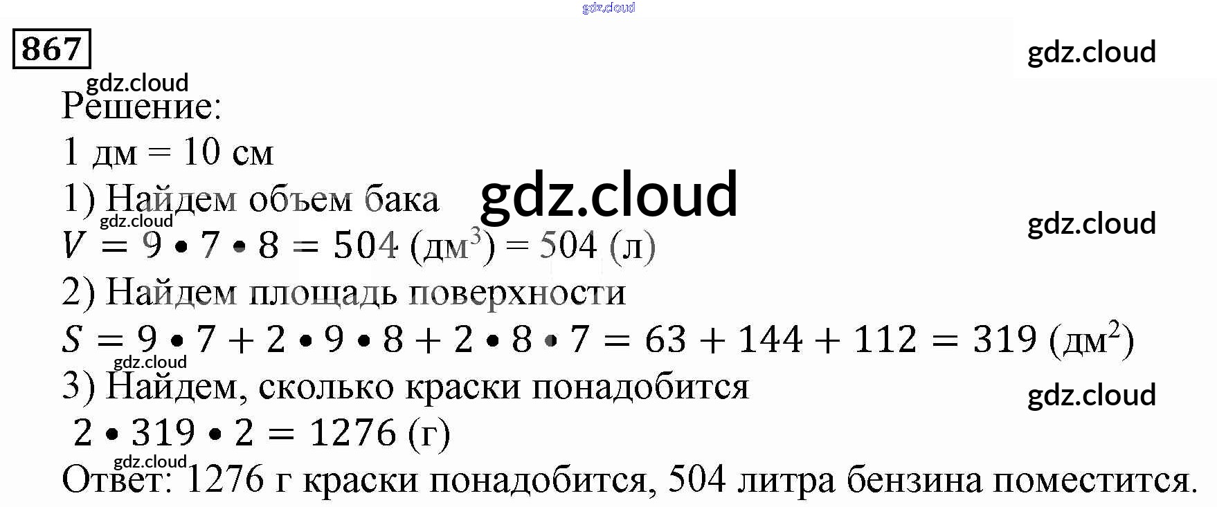 Ответ на задание 867 Учебник Математика за 5 (пятый) класс Виленкин, Жохов, Чесноков, Шварцбурд 2013