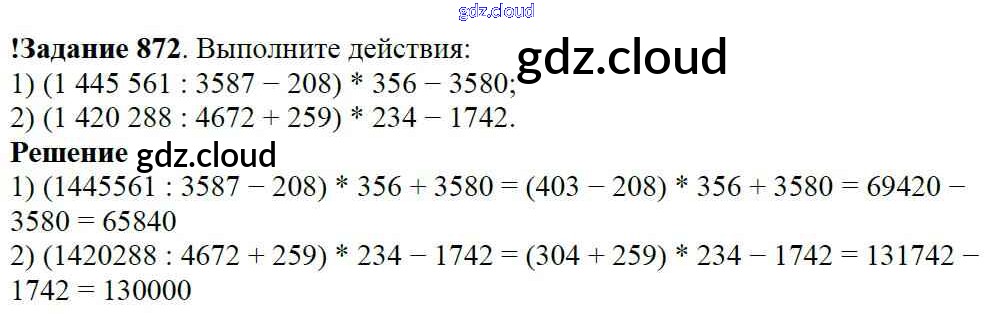 Ответ на задание 872 Учебник Математика за 5 (пятый) класс Виленкин, Жохов, Чесноков, Шварцбурд 2013