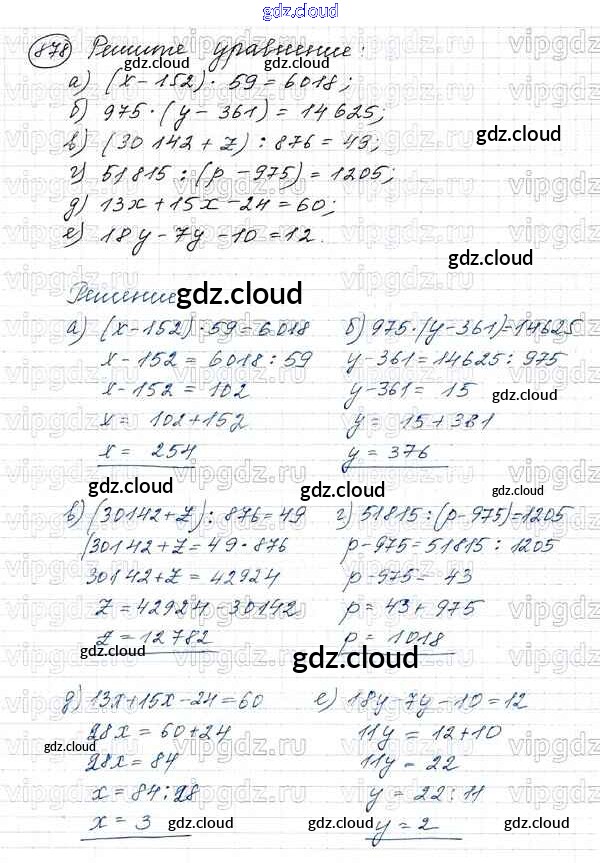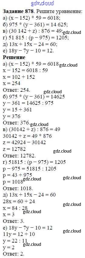 Ответ на задание 878 Учебник Математика за 5 (пятый) класс Виленкин, Жохов, Чесноков, Шварцбурд 2013