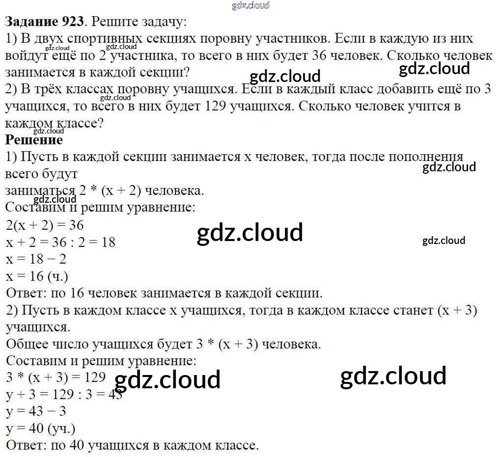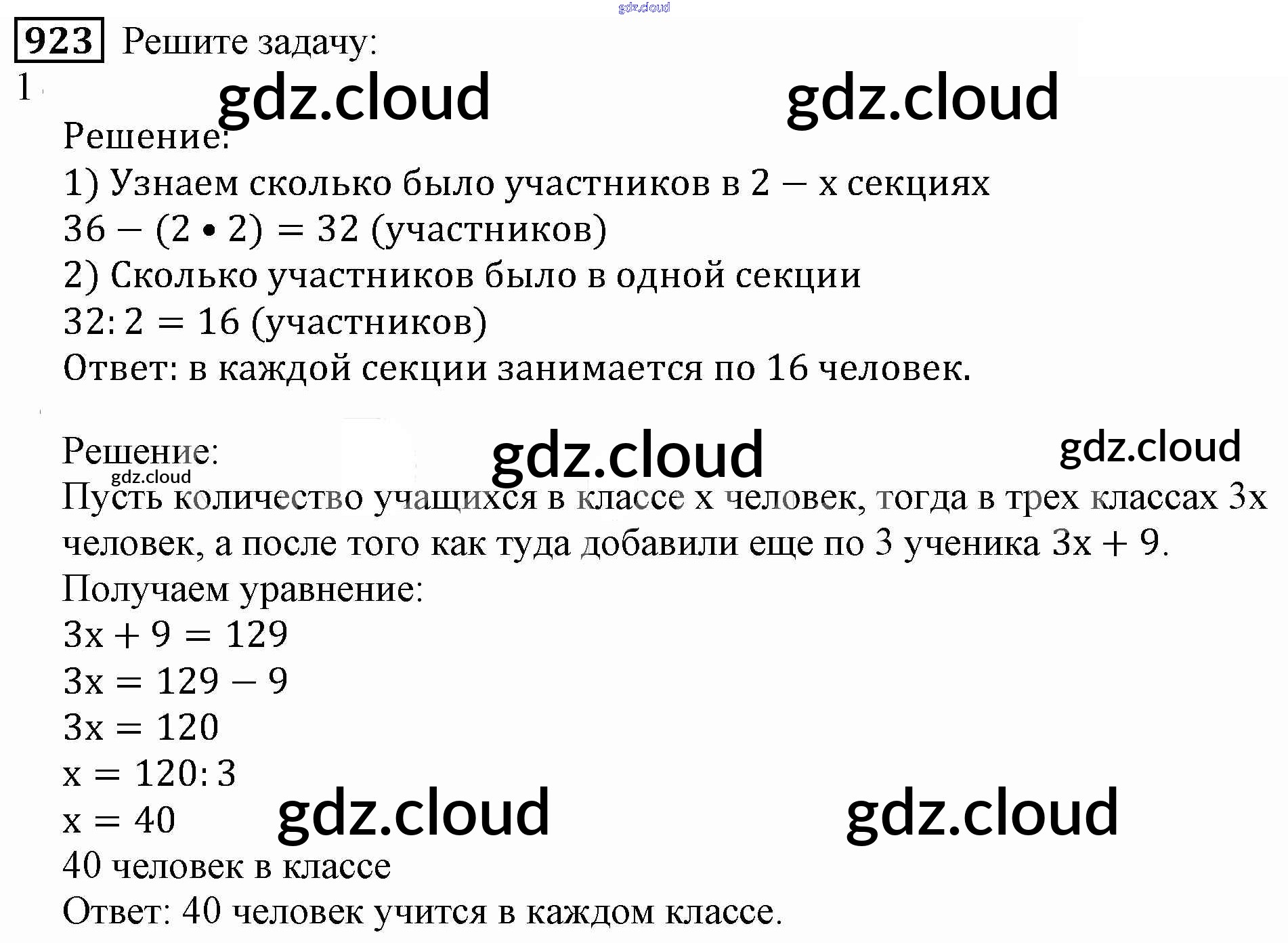 Ответ на задание 923 Учебник Математика за 5 (пятый) класс Виленкин, Жохов, Чесноков, Шварцбурд 2013