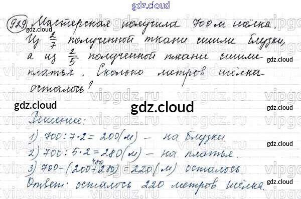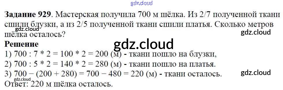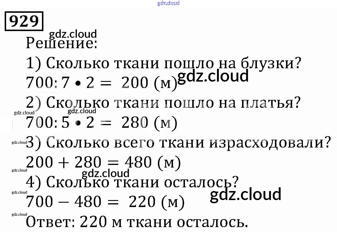 Ответ на задание 929 Учебник Математика за 5 (пятый) класс Виленкин, Жохов, Чесноков, Шварцбурд 2013
