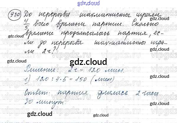 Ответ на задание 930 Учебник Математика за 5 (пятый) класс Виленкин, Жохов, Чесноков, Шварцбурд 2013