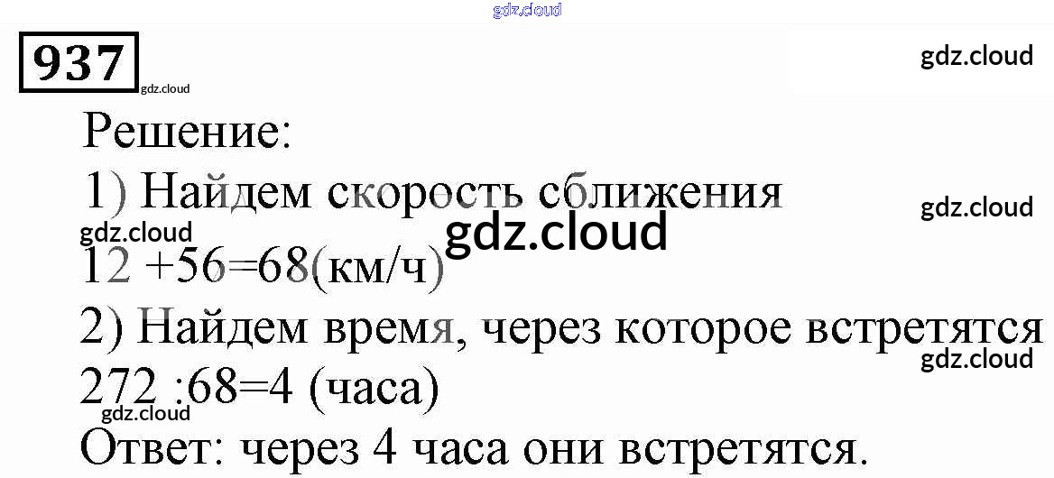 Ответ на задание 937 Учебник Математика за 5 (пятый) класс Виленкин, Жохов, Чесноков, Шварцбурд 2013
