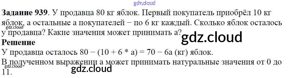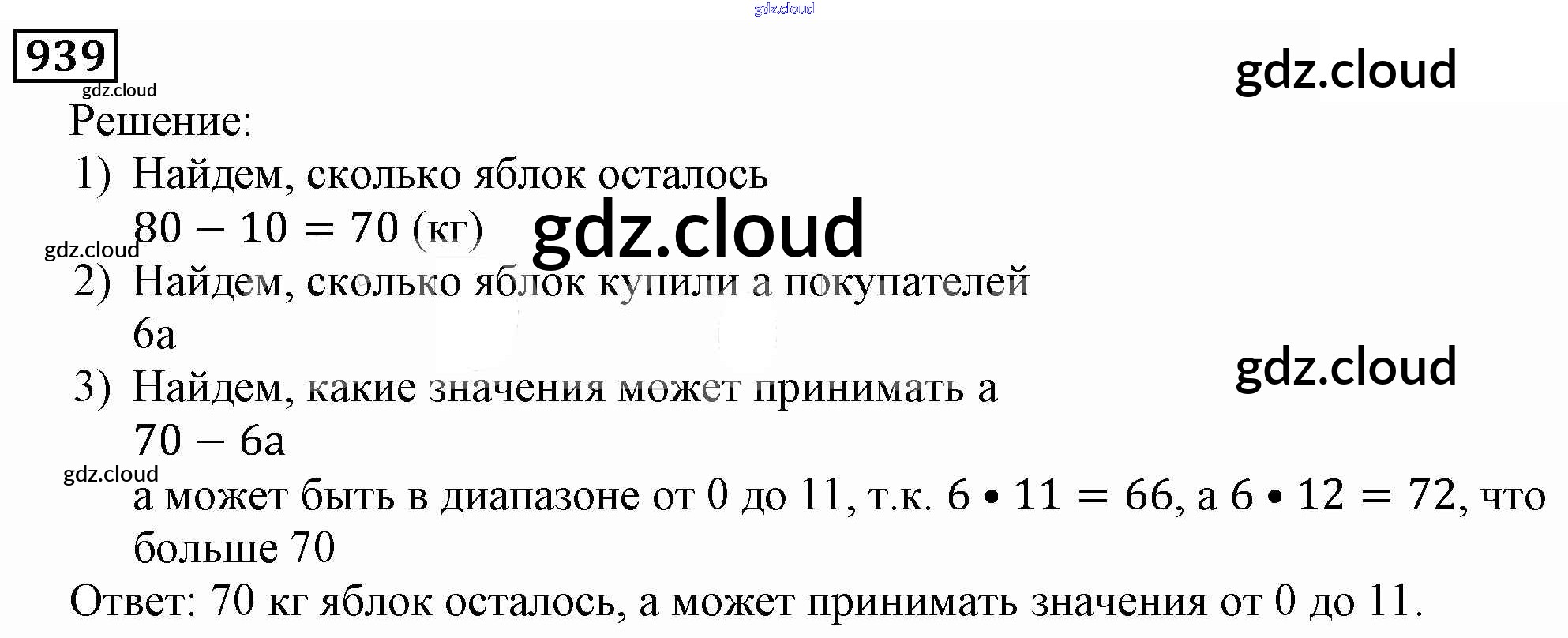 Ответ на задание 939 Учебник Математика за 5 (пятый) класс Виленкин, Жохов, Чесноков, Шварцбурд 2013
