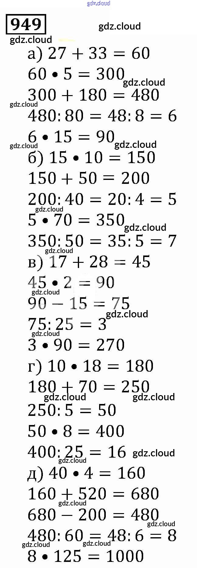 Ответ на задание 949 Учебник Математика за 5 (пятый) класс Виленкин, Жохов, Чесноков, Шварцбурд 2013