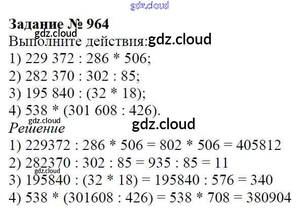Ответ на задание 964 Учебник Математика за 5 (пятый) класс Виленкин, Жохов, Чесноков, Шварцбурд 2013