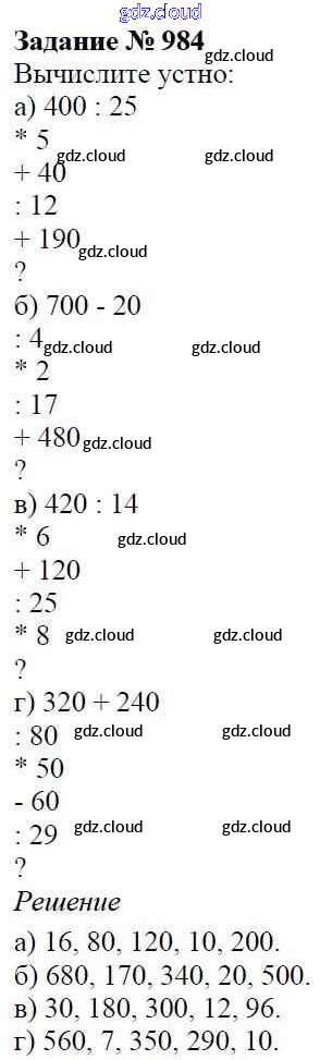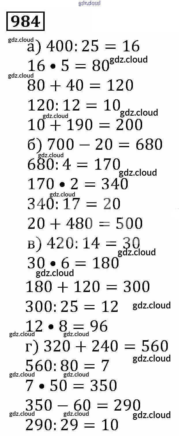Ответ на задание 984 Учебник Математика за 5 (пятый) класс Виленкин, Жохов, Чесноков, Шварцбурд 2013