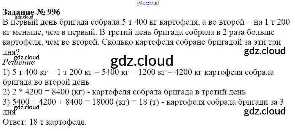 Ответ на задание 996 Учебник Математика за 5 (пятый) класс Виленкин, Жохов, Чесноков, Шварцбурд 2013