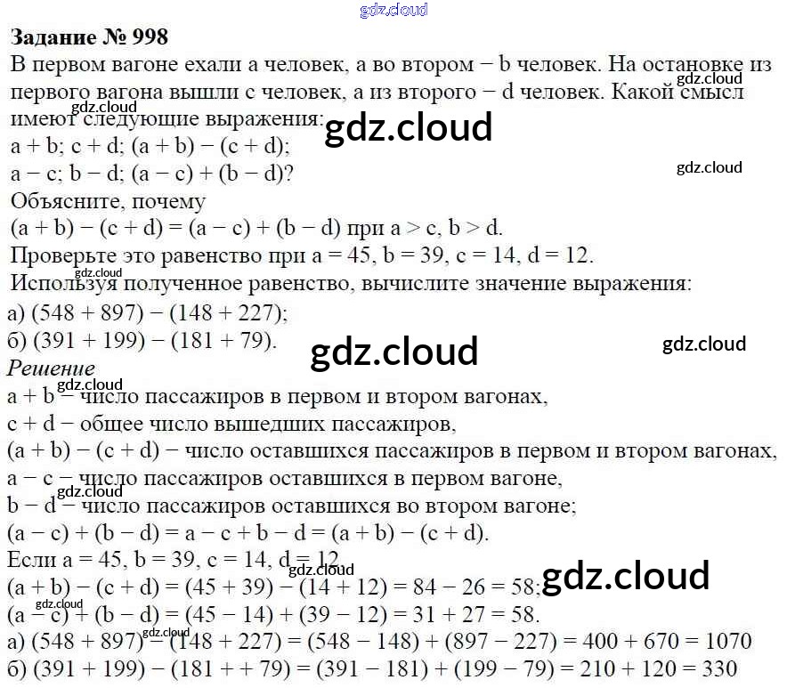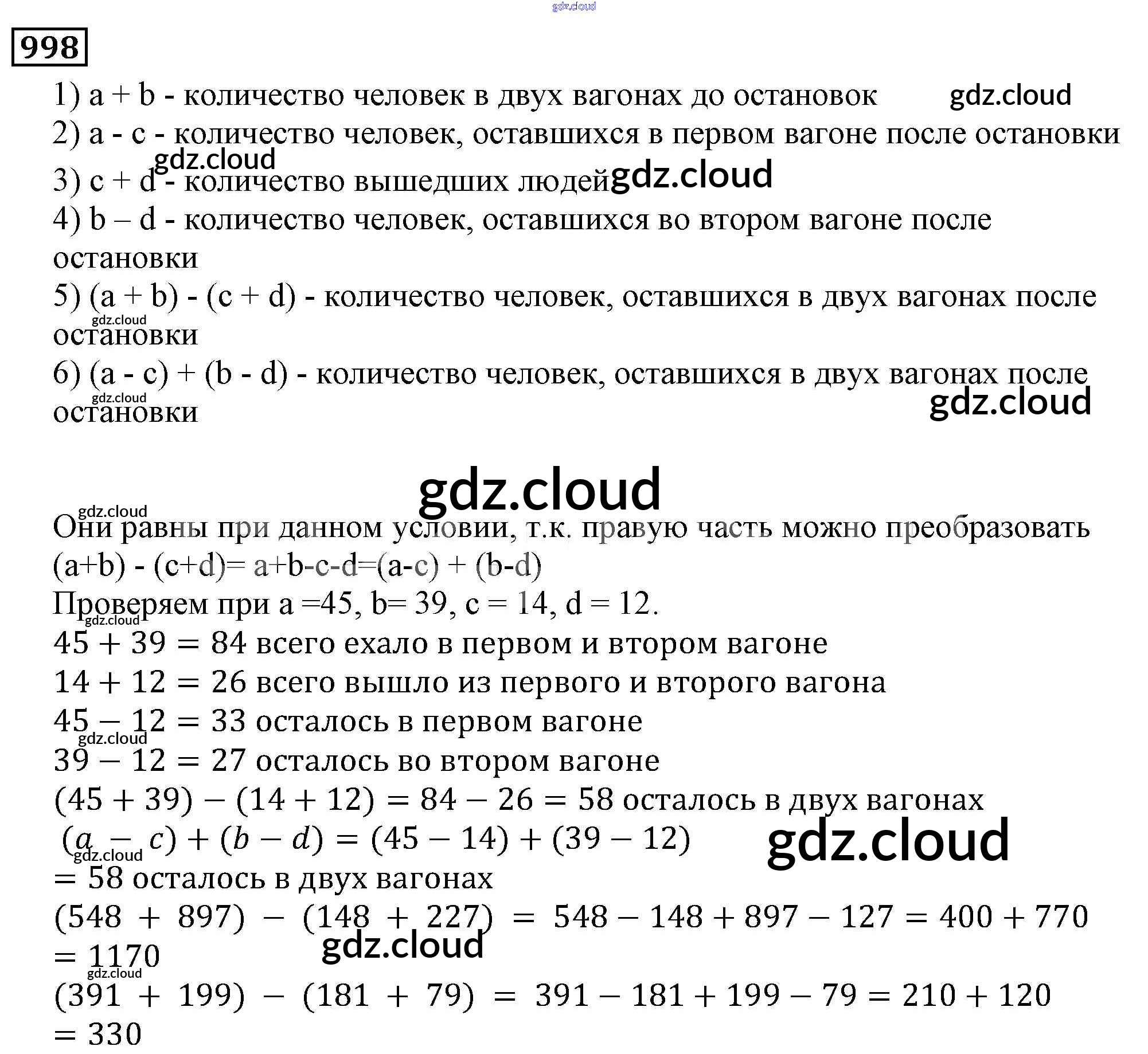 Ответ на задание 998 Учебник Математика за 5 (пятый) класс Виленкин, Жохов, Чесноков, Шварцбурд 2013