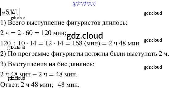 Ответ на задание 5.141 Учебник Математика за 5 (пятый) класс Виленкин, Жохов, Чесноков, Александрова, Шварцбурд 2021 Часть 2