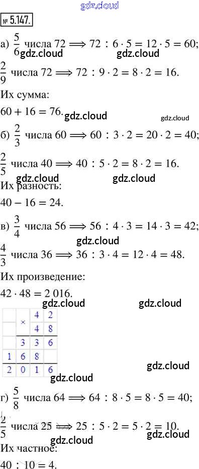 Ответ на задание 5.147 Учебник Математика за 5 (пятый) класс Виленкин, Жохов, Чесноков, Александрова, Шварцбурд 2021 Часть 2