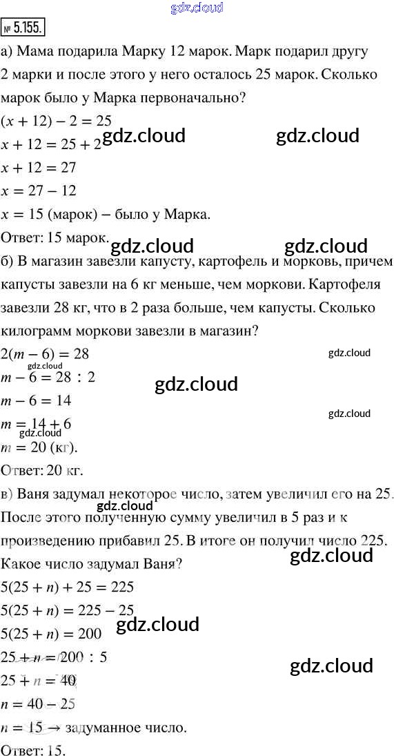 Ответ на задание 5.155 Учебник Математика за 5 (пятый) класс Виленкин, Жохов, Чесноков, Александрова, Шварцбурд 2021 Часть 2