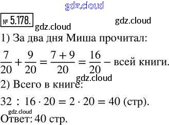 Ответ на задание 5.178 Учебник Математика за 5 (пятый) класс Виленкин, Жохов, Чесноков, Александрова, Шварцбурд 2021 Часть 2