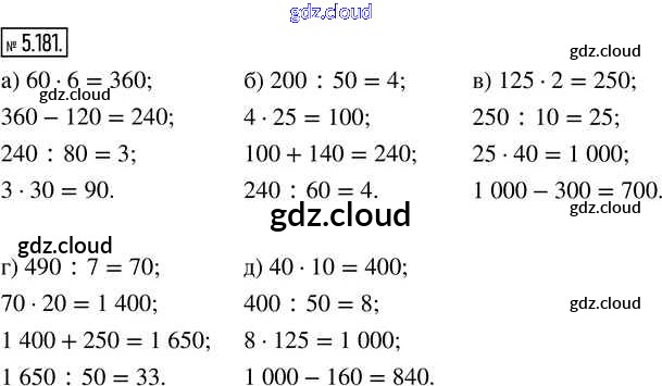 Ответ на задание 5.181 Учебник Математика за 5 (пятый) класс Виленкин, Жохов, Чесноков, Александрова, Шварцбурд 2021 Часть 2
