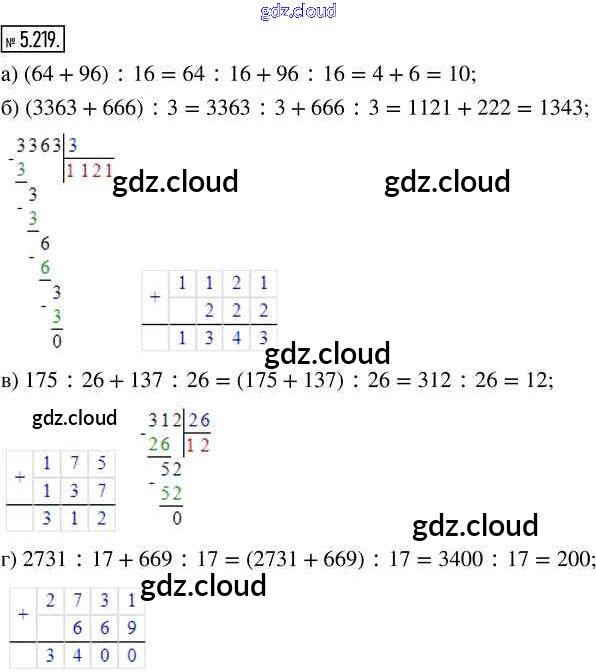 Ответ на задание 5.219 Учебник Математика за 5 (пятый) класс Виленкин, Жохов, Чесноков, Александрова, Шварцбурд 2021 Часть 2
