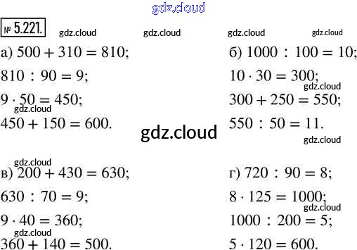 Ответ на задание 5.221 Учебник Математика за 5 (пятый) класс Виленкин, Жохов, Чесноков, Александрова, Шварцбурд 2021 Часть 2