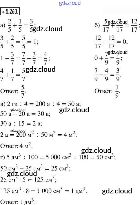 Ответ на задание 5.260 Учебник Математика за 5 (пятый) класс Виленкин, Жохов, Чесноков, Александрова, Шварцбурд 2021 Часть 2