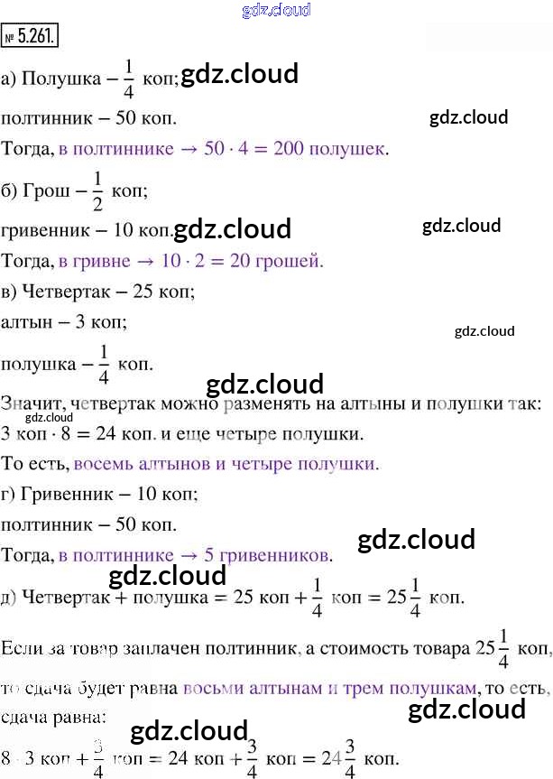 Ответ на задание 5.261 Учебник Математика за 5 (пятый) класс Виленкин, Жохов, Чесноков, Александрова, Шварцбурд 2021 Часть 2