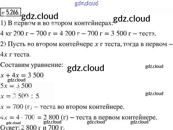 Ответ на задание 5.266 Учебник Математика за 5 (пятый) класс Виленкин, Жохов, Чесноков, Александрова, Шварцбурд 2021 Часть 2