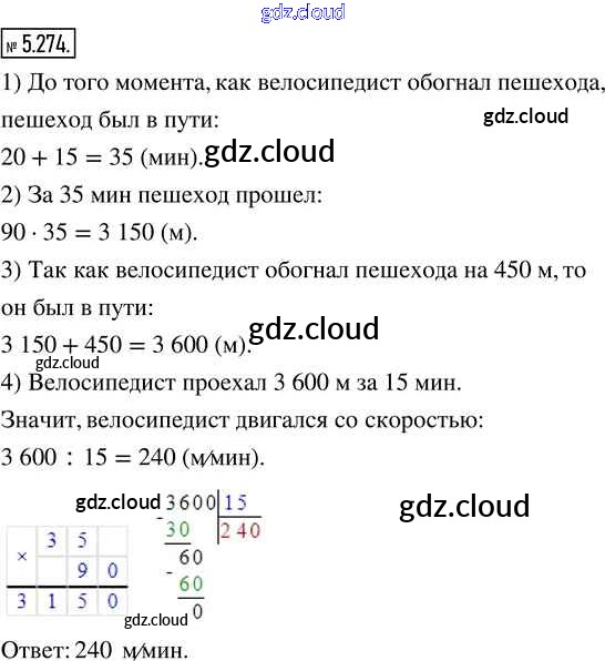 Ответ на задание 5.274 Учебник Математика за 5 (пятый) класс Виленкин, Жохов, Чесноков, Александрова, Шварцбурд 2021 Часть 2