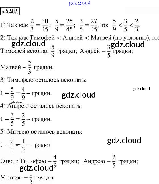 Ответ на задание 5.407 Учебник Математика за 5 (пятый) класс Виленкин, Жохов, Чесноков, Александрова, Шварцбурд 2021 Часть 2