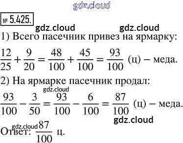 Ответ на задание 5.425 Учебник Математика за 5 (пятый) класс Виленкин, Жохов, Чесноков, Александрова, Шварцбурд 2021 Часть 2