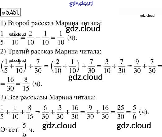 Ответ на задание 5.451 Учебник Математика за 5 (пятый) класс Виленкин, Жохов, Чесноков, Александрова, Шварцбурд 2021 Часть 2