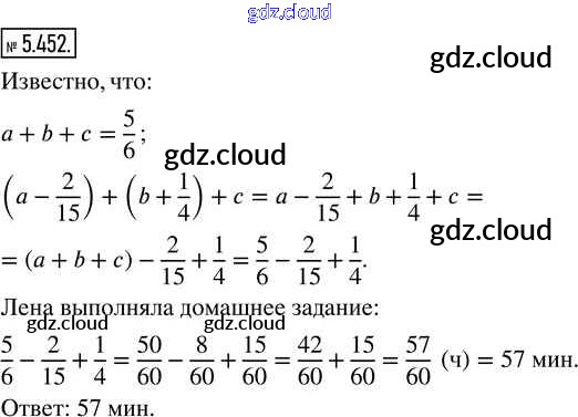 Ответ на задание 5.452 Учебник Математика за 5 (пятый) класс Виленкин, Жохов, Чесноков, Александрова, Шварцбурд 2021 Часть 2