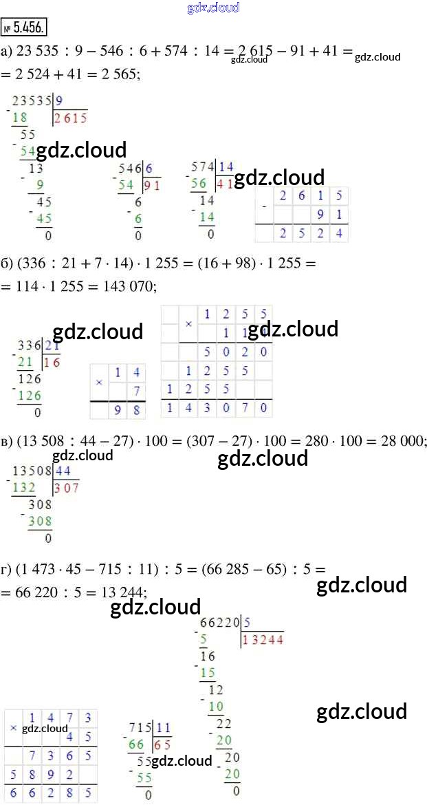 Ответ на задание 5.456 Учебник Математика за 5 (пятый) класс Виленкин, Жохов, Чесноков, Александрова, Шварцбурд 2021 Часть 2