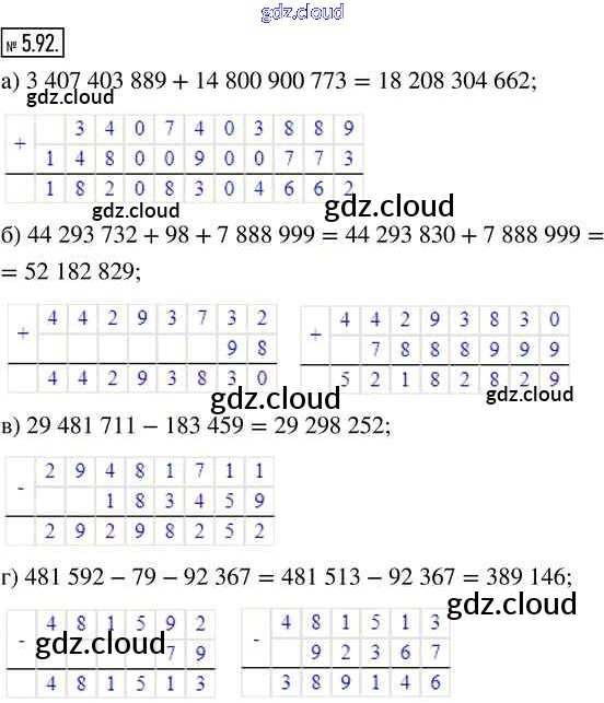 Ответ на задание 5.92 Учебник Математика за 5 (пятый) класс Виленкин, Жохов, Чесноков, Александрова, Шварцбурд 2021 Часть 2