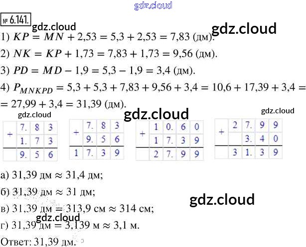 Ответ на задание 6.141 Учебник Математика за 5 (пятый) класс Виленкин, Жохов, Чесноков, Александрова, Шварцбурд 2021 Часть 2
