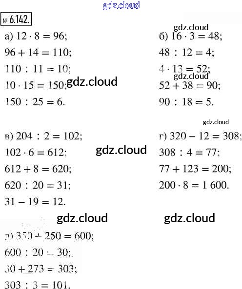 Ответ на задание 6.142 Учебник Математика за 5 (пятый) класс Виленкин, Жохов, Чесноков, Александрова, Шварцбурд 2021 Часть 2