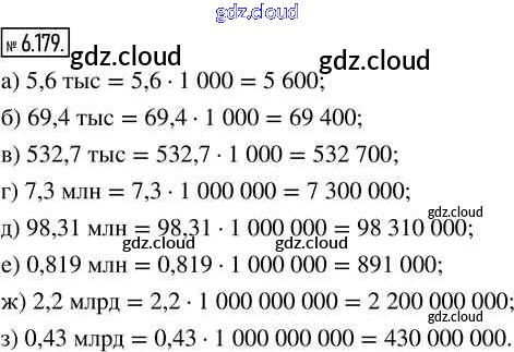 Ответ на задание 6.179 Учебник Математика за 5 (пятый) класс Виленкин, Жохов, Чесноков, Александрова, Шварцбурд 2021 Часть 2