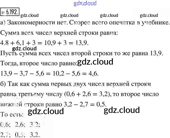Ответ на задание 6.192 Учебник Математика за 5 (пятый) класс Виленкин, Жохов, Чесноков, Александрова, Шварцбурд 2021 Часть 2