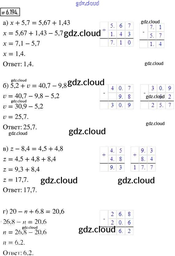 Ответ на задание 6.194 Учебник Математика за 5 (пятый) класс Виленкин, Жохов, Чесноков, Александрова, Шварцбурд 2021 Часть 2