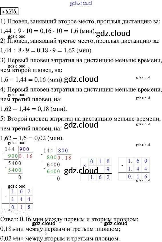 Ответ на задание 6.216 Учебник Математика за 5 (пятый) класс Виленкин, Жохов, Чесноков, Александрова, Шварцбурд 2021 Часть 2