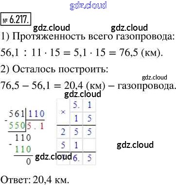 Ответ на задание 6.217 Учебник Математика за 5 (пятый) класс Виленкин, Жохов, Чесноков, Александрова, Шварцбурд 2021 Часть 2