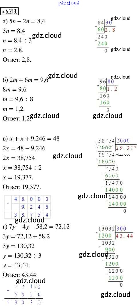 Ответ на задание 6.218 Учебник Математика за 5 (пятый) класс Виленкин, Жохов, Чесноков, Александрова, Шварцбурд 2021 Часть 2