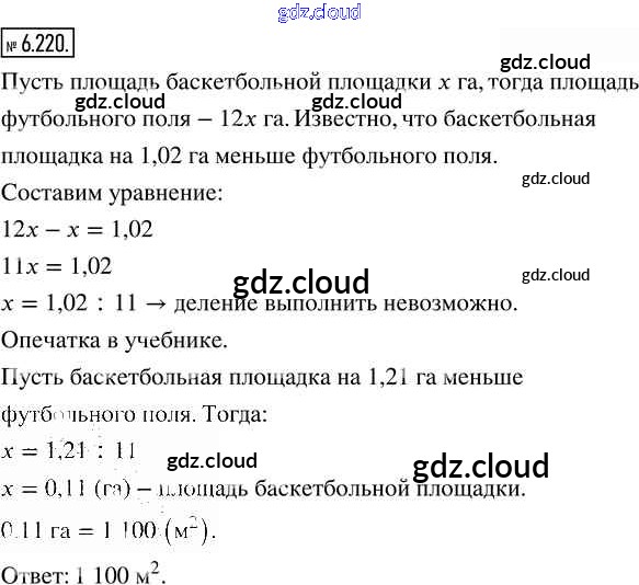 Ответ на задание 6.220 Учебник Математика за 5 (пятый) класс Виленкин, Жохов, Чесноков, Александрова, Шварцбурд 2021 Часть 2