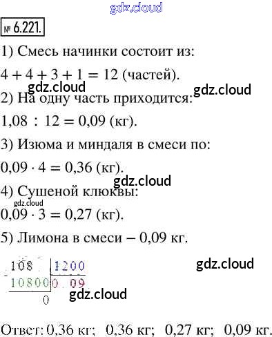 Ответ на задание 6.221 Учебник Математика за 5 (пятый) класс Виленкин, Жохов, Чесноков, Александрова, Шварцбурд 2021 Часть 2